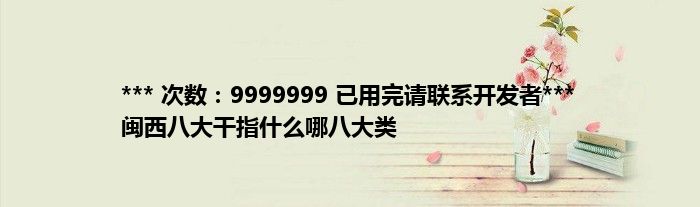 大家好,综合小编来为大家讲解下。*** 次数:9999999 已用完请联系开发者*** 闽西八大干指什么哪八大类这个很多人还不知道,现在让我们一起来看看吧!