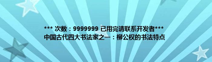 本文*** 次数:9999999 已用完请联系开发者*** 中国古代四大书法家之一:柳公权的书法特点到此分享完毕,希望对大家有所帮助。