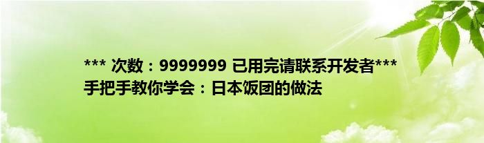 本文*** 次数:9999999 已用完请联系开发者*** 手把手教你学会:日本饭团的做法到此分享完毕,希望对大家有所帮助。