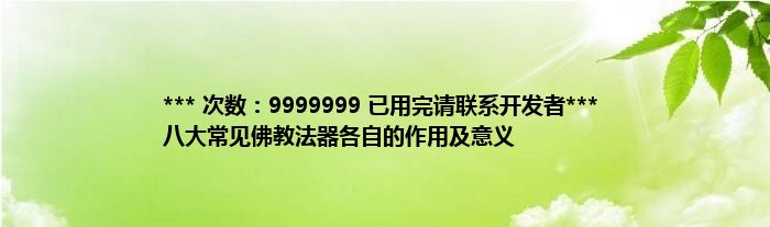 本文*** 次数:9999999 已用完请联系开发者*** 八大常见佛教法器各自的作用及意义到此分享完毕,希望对大家有所帮助。