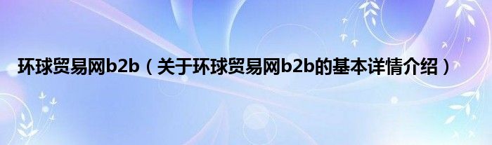 本文关于环球贸易网b2b的基本详情介绍就讲解完毕,希望对大家有所帮助。