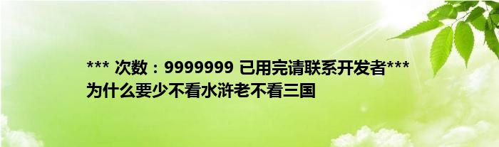 大家好,综合小编来为大家讲解下。*** 次数:9999999 已用完请联系开发者*** 为什么要少不看水浒老不看三国这个很多人还不知道,现在让我们一起来看看吧!