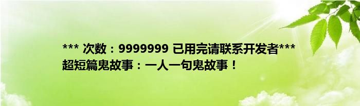 本文*** 次数:9999999 已用完请联系开发者*** 超短篇鬼故事:一人一句鬼故事!到此分享完毕,希望对大家有所帮助。