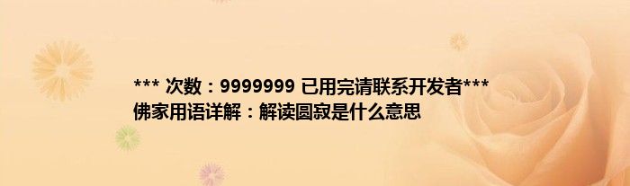 大家好,综合小编来为大家讲解下。*** 次数:9999999 已用完请联系开发者*** 佛家用语详解:解读圆寂是什么意思这个很多人还不知道,现在让我们一起来看看吧!