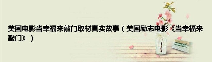 本文美国电影当幸福来敲门取材真实故事,美国励志电影《当幸福来敲门》到此分享完毕,希望对大家有所帮助。