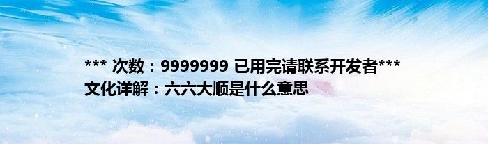 大家好,综合小编来为大家讲解下。*** 次数:9999999 已用完请联系开发者*** 文化详解:六六大顺是什么意思这个很多人还不知道,现在让我们一起来看看吧!
