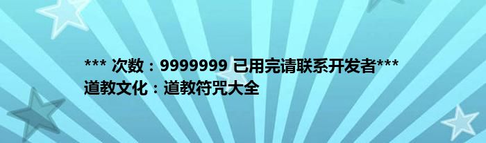 本文*** 次数:9999999 已用完请联系开发者*** 道教文化:道教符咒大全到此分享完毕,希望对大家有所帮助。