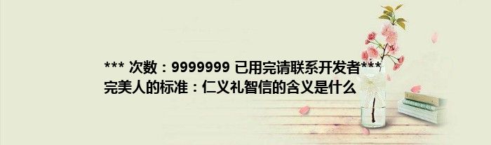 大家好,综合小编来为大家讲解下。*** 次数:9999999 已用完请联系开发者*** 完美人的标准:仁义礼智信的含义是什么这个很多人还不知道,现在让我们一起来看看吧!