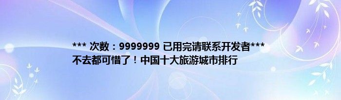 大家好,综合小编来为大家讲解下。*** 次数:9999999 已用完请联系开发者*** 不去都可惜了!中国十大旅游城市排行这个很多人还不知道,现在让我们一起来看看吧!