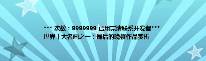 大家好,综合小编来为大家讲解下。*** 次数:9999999 已用完请联系开发者*** 世界十大名画之一:最后的晚餐作品赏析这个很多人还不知道,现在让我们一起来看看吧!