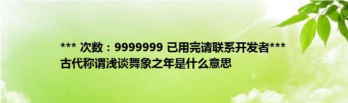大家好,综合小编来为大家讲解下。*** 次数:9999999 已用完请联系开发者*** 古代称谓浅谈舞象之年是什么意思这个很多人还不知道,现在让我们一起来看看吧!