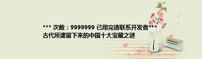 大家好,综合小编来为大家讲解下。*** 次数:9999999 已用完请联系开发者*** 古代所遗留下来的中国十大宝藏之谜这个很多人还不知道,现在让我们一起来看看吧!