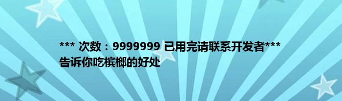 大家好,综合小编来为大家讲解下。*** 次数:9999999 已用完请联系开发者*** 告诉你吃槟榔的好处这个很多人还不知道,现在让我们一起来看看吧!