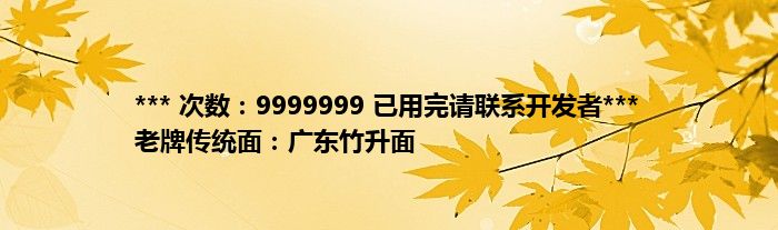 本文*** 次数:9999999 已用完请联系开发者*** 老牌传统面:广东竹升面到此分享完毕,希望对大家有所帮助。