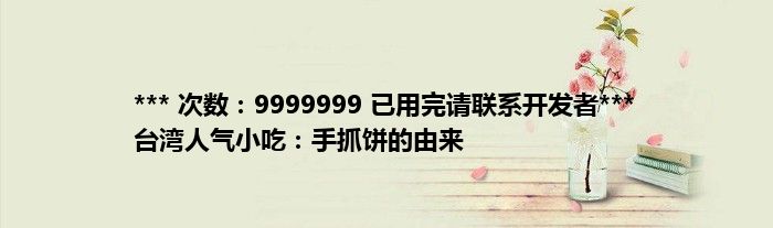 大家好,综合小编来为大家讲解下。*** 次数:9999999 已用完请联系开发者*** 台湾人气小吃:手抓饼的由来这个很多人还不知道,现在让我们一起来看看吧!