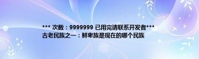 大家好,综合小编来为大家讲解下。*** 次数:9999999 已用完请联系开发者*** 古老民族之一:鲜卑族是现在的哪个民族这个很多人还不知道,现在让我们一起来看看吧!