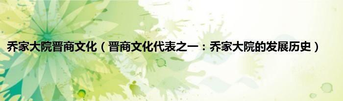 本文乔家大院晋商文化,晋商文化代表之一:乔家大院的发展历史到此分享完毕,希望对大家有所帮助。