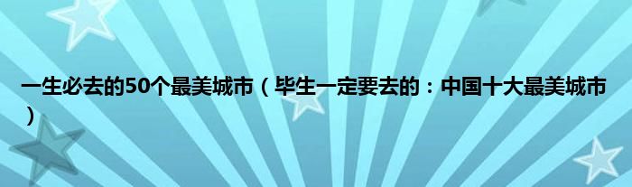 大家好,综合小编来为大家讲解下。一生必去的50个最美城市,毕生一定要去的:中国十大最美城市这个很多人还不知道,现在让我们一起来看看吧!