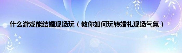 大家好,综合小编来为大家讲解下。什么游戏能结婚现场玩,教你如何玩转婚礼现场气氛这个很多人还不知道,现在让我们一起来看看吧!