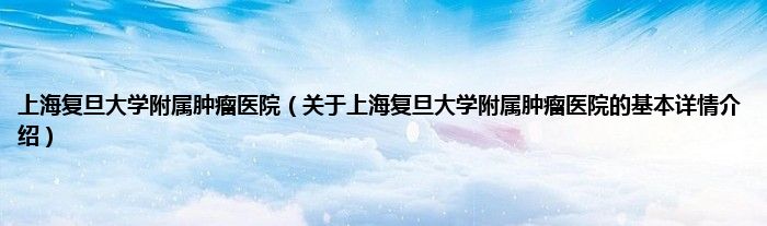 本文关于上海复旦大学附属肿瘤医院的基本详情介绍就讲解完毕,希望对大家有所帮助。