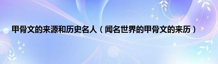 大家好,综合小编来为大家讲解下。甲骨文的来源和历史名人,闻名世界的甲骨文的来历这个很多人还不知道,现在让我们一起来看看吧!