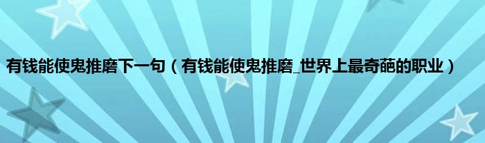 大家好,综合小编来为大家讲解下。有钱能使鬼推磨下一句,有钱能使鬼推磨_世界上最奇葩的职业这个很多人还不知道,现在让我们一起来看看吧!