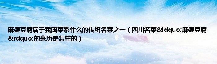 本文麻婆豆腐属于我国菜系什么的传统名菜之一,四川名菜“麻婆豆腐”的来历是怎样的到此分享完毕,希望对大家有所帮助。