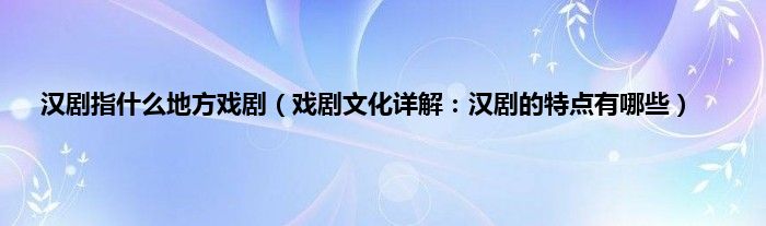 大家好,综合小编来为大家讲解下。汉剧指什么地方戏剧,戏剧文化详解:汉剧的特点有哪些这个很多人还不知道,现在让我们一起来看看吧!