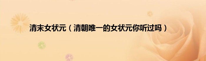 大家好,综合小编来为大家讲解下。清末女状元,清朝唯一的女状元你听过吗这个很多人还不知道,现在让我们一起来看看吧!