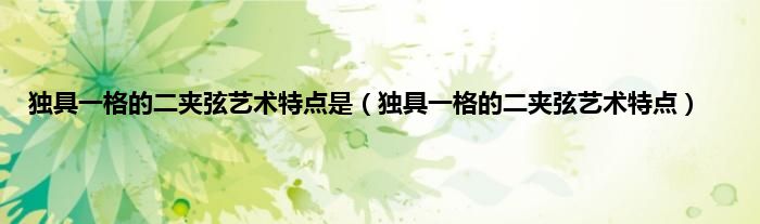 大家好,综合小编来为大家讲解下。独具一格的二夹弦艺术特点是,独具一格的二夹弦艺术特点这个很多人还不知道,现在让我们一起来看看吧!
