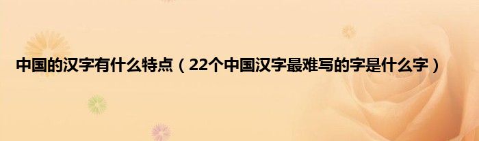 本文中国的汉字有什么特点,22个中国汉字最难写的字是什么字到此分享完毕,希望对大家有所帮助。