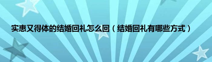 大家好,综合小编来为大家讲解下。实惠又得体的结婚回礼怎么回,结婚回礼有哪些方式这个很多人还不知道,现在让我们一起来看看吧!