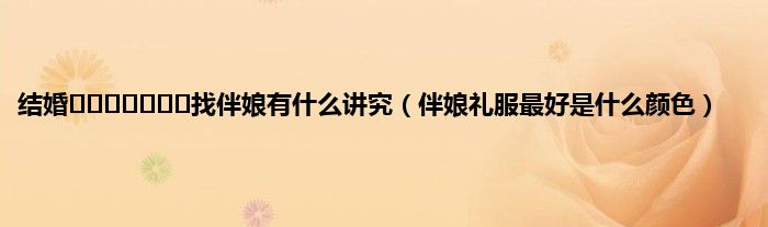 大家好,综合小编来为大家讲解下。结婚找伴娘有什么讲究,伴娘礼服最好是什么颜色这个很多人还不知道,现在让我们一起来看看吧!