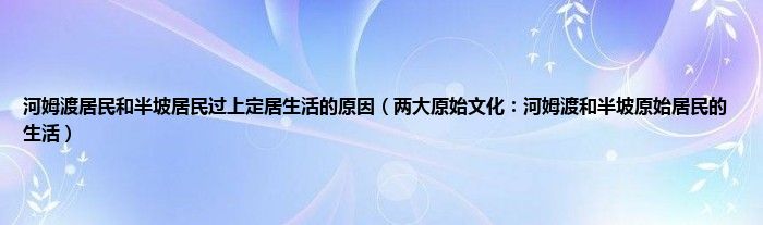 大家好,综合小编来为大家讲解下。河姆渡居民和半坡居民过上定居生活的原因,两大原始文化:河姆渡和半坡原始居民的生活这个很多人还不知道,现在让我们一起来看看吧!