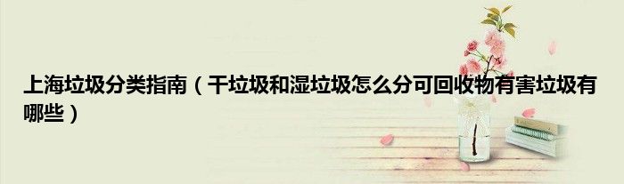 本文上海垃圾分类指南,干垃圾和湿垃圾怎么分可回收物有害垃圾有哪些到此分享完毕,希望对大家有所帮助。