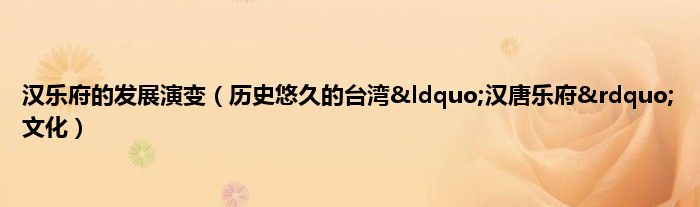 本文汉乐府的发展演变,历史悠久的台湾“汉唐乐府”文化到此分享完毕,希望对大家有所帮助。
