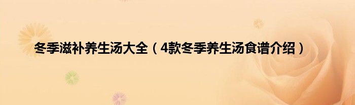 大家好,综合小编来为大家讲解下。冬季滋补养生汤大全,4款冬季养生汤食谱介绍这个很多人还不知道,现在让我们一起来看看吧!
