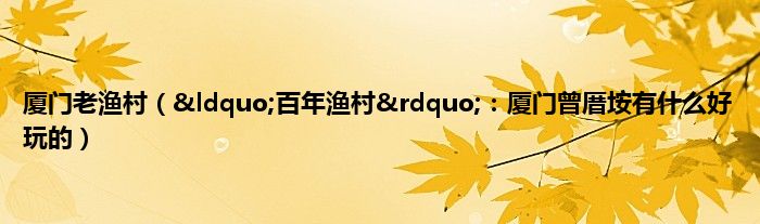 大家好,综合小编来为大家讲解下。厦门老渔村,“百年渔村”:厦门曾厝垵有什么好玩的这个很多人还不知道,现在让我们一起来看看吧!