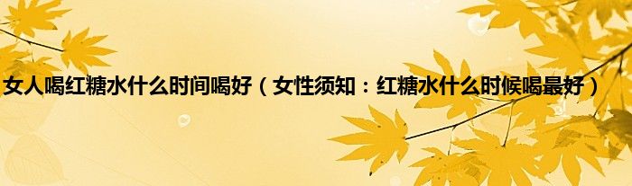 大家好,综合小编来为大家讲解下。女人喝红糖水什么时间喝好,女性须知:红糖水什么时候喝最好这个很多人还不知道,现在让我们一起来看看吧!