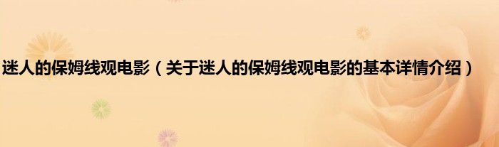 本文关于迷人的保姆线观电影的基本详情介绍就讲解完毕,希望对大家有所帮助。