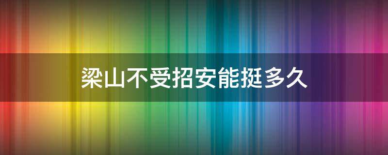 梁山不受招安能挺3-5年。顶多3-5年梁山就会被朝廷给连根拔起,全部灭掉。《水浒传》是1997年1月1日人民文学出版社出版的图书,作者是施耐庵。《水浒传》是一部长篇英雄传奇,是中国古代长篇小说的代表作之一,是以宋江起义故事为线索创作出来的。宋江起义发生在北宋徽宗时期,《宋史》的《徽宗本纪》《侯蒙传》《张叔夜传》等都有记载。从南宋起,宋江起义的故事就在民间流传,《醉翁谈录》记载了一些独立的有关水浒英雄的传说,《大宋宣和遗事》把许多水浒故事联缀起来,和长篇小说已经很接近。元代出现了不少水浒戏,一批梁山英雄作为舞台形象出现。