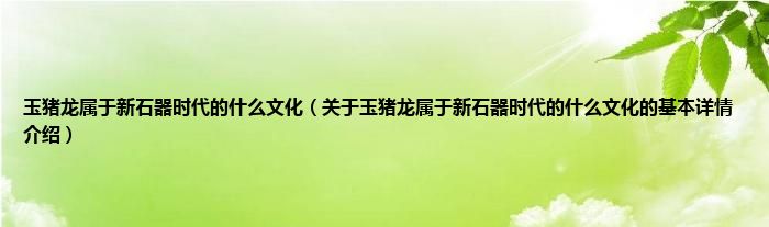 本文关于玉猪龙属于新石器时代的什么文化的基本详情介绍就讲解完毕,希望对大家有所帮助。