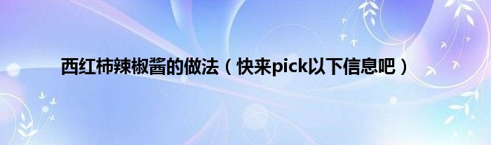 欢迎观看本篇文章,小升来为大家解答以上问题。西红柿辣椒酱的做法,快来pick以下信息吧很多人还不知道,现在让我们一起来看看吧!