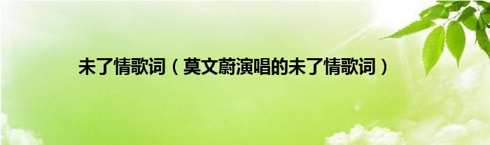 欢迎观看本篇文章,小升来为大家解答以上问题。未了情歌词,莫文蔚演唱的未了情歌词很多人还不知道,现在让我们一起来看看吧!