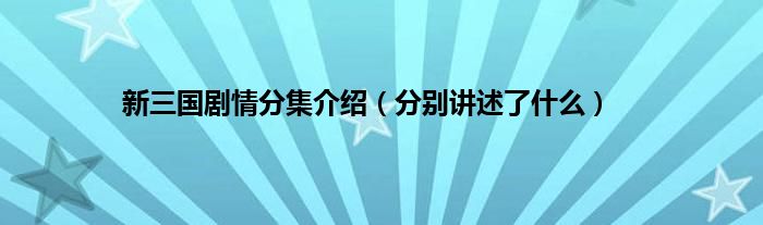 欢迎观看本篇文章,小升来为大家解答以上问题。新三国剧情分集介绍,分别讲述了什么很多人还不知道,现在让我们一起来看看吧!