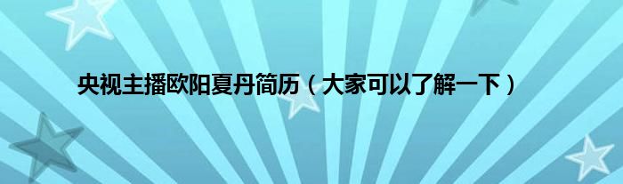 欢迎观看本篇文章,小升来为大家解答以上问题。央视主播欧阳夏丹简历,大家可以了解一下很多人还不知道,现在让我们一起来看看吧!