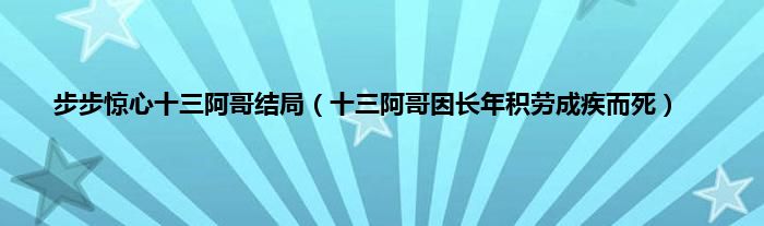 欢迎观看本篇文章,小升来为大家解答以上问题。步步惊心十三阿哥结局,十三阿哥因长年积劳成疾而死很多人还不知道,现在让我们一起来看看吧!