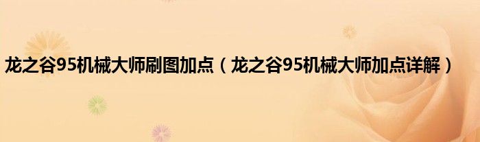 欢迎观看本篇文章,小升来为大家解答以上问题。龙之谷95机械大师刷图加点,龙之谷95机械大师加点详解很多人还不知道,现在让我们一起来看看吧!