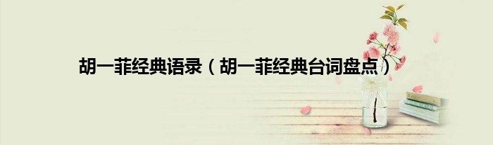 欢迎观看本篇文章,小升来为大家解答以上问题。胡一菲经典语录,胡一菲经典台词盘点很多人还不知道,现在让我们一起来看看吧!