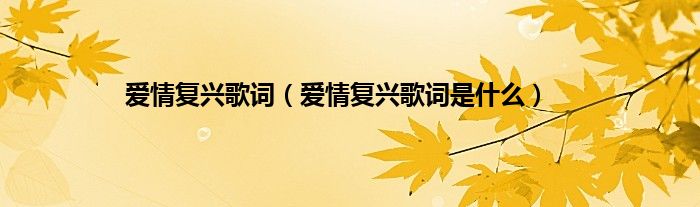 欢迎观看本篇文章,小升来为大家解答以上问题。爱情复兴歌词,爱情复兴歌词是什么很多人还不知道,现在让我们一起来看看吧!